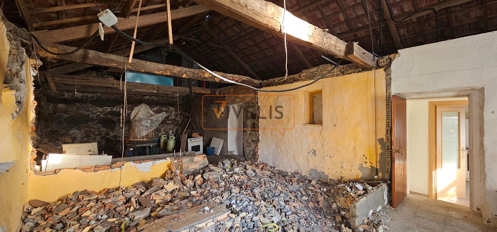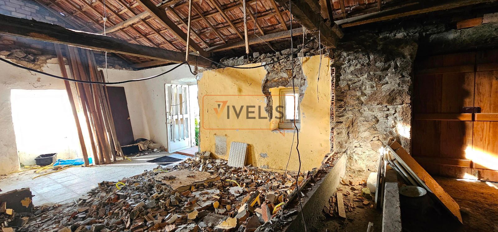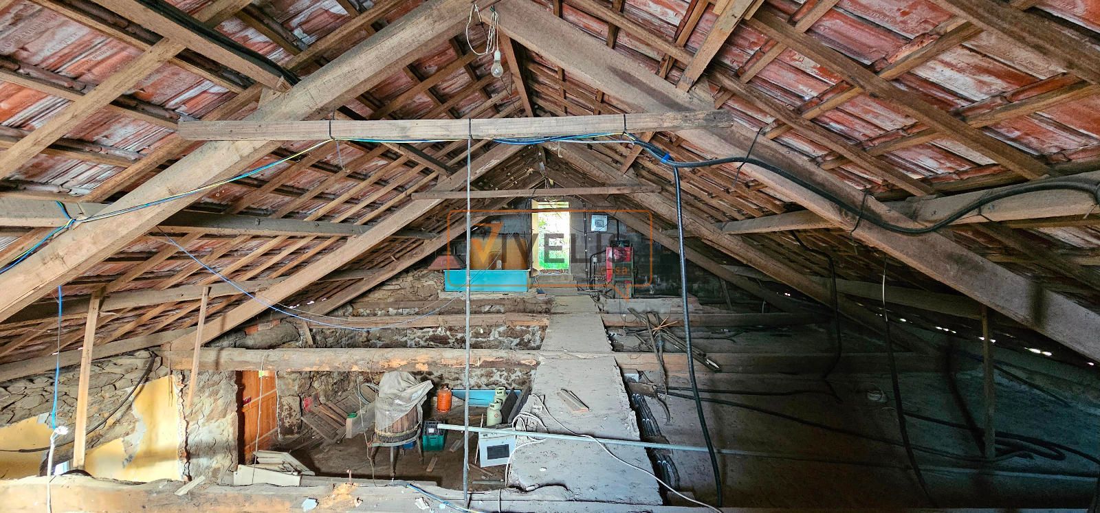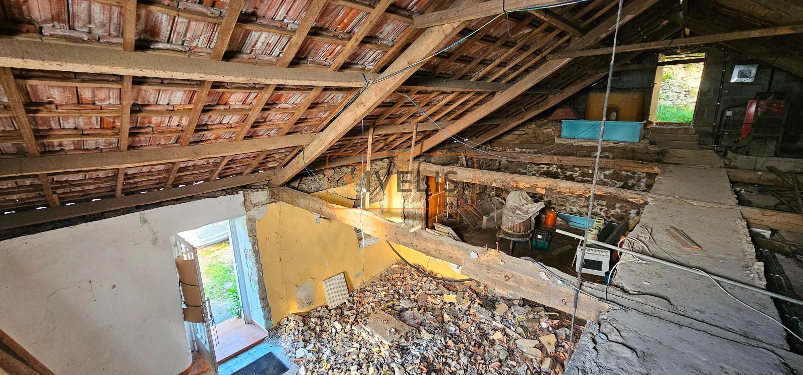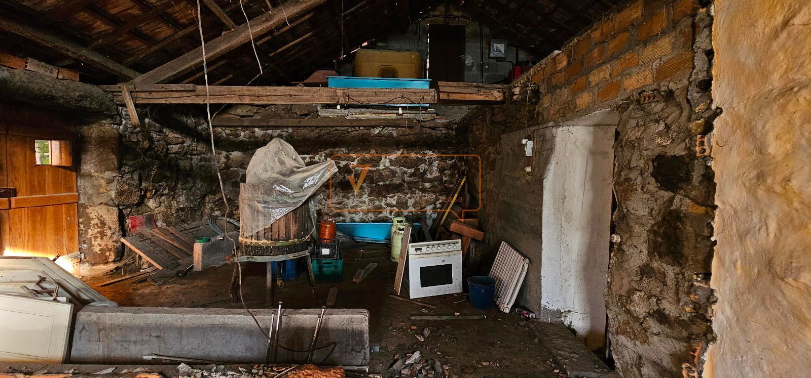 La casa es tan especial como su ubicación. Está dividida en dos mitades, lo que la hace diferente y llena de posibilidades. Una de esas mitades fue rehabilitada hace unos años y se encuentra prácticamente lista para entrar a vivir, con una habitación amplia que incluye vestidor, un baño y una cocina completamente operativa. Solo necesitaría pequeños retoques para ponerla al día y adaptarla al gusto de quien llegue. La otra mitad, en cambio, se mantiene en bruto, con la piedra a la vista y sin reforma finalizada. Eso abre un abanico enorme de opciones para quien quiera diseñar su propio espacio, ampliar la vivienda o crear ambientes únicos a partir de su estructura original. Lo importante es que el tejado está en buen estado, así como las vigas, por lo que no hay que afrontar obras en cubierta.
