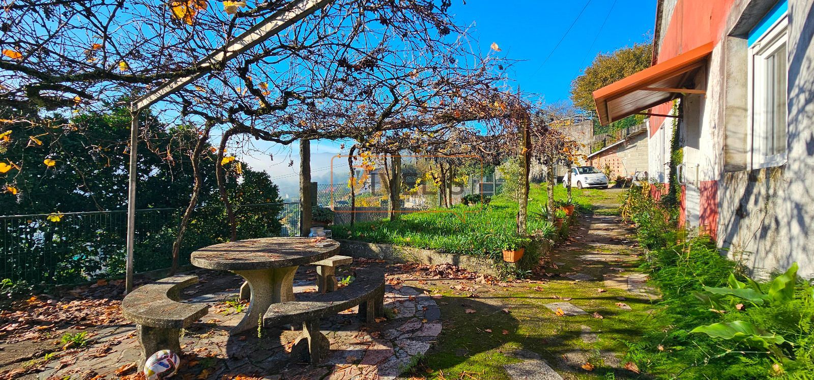 En Guláns - Ponteareas, se encuentra una de esas propiedades que sorprenden nada más llegar. Situada en un alto, esta casita disfruta de unas vistas absolutamente increíbles: un valle abierto, montañas al fondo y una sensación de amplitud que convierte toda la finca en un auténtico balcón privado. Es uno de esos lugares donde te detienes un segundo y piensas: “Aquí sí que se respira tranquilidad”. Una finca mágica de 1.026 m², con un agradable jardín en la parte delantera y distintas balconadas en la parte trasera, que permiten aprovechar la pendiente del terreno para crear zonas de descanso, cultivo, ocio o simplemente para sentarte a contemplar el paisaje.