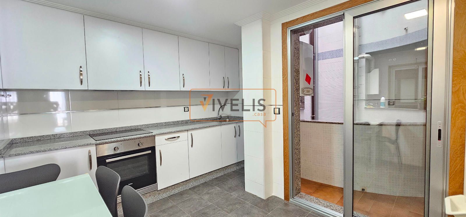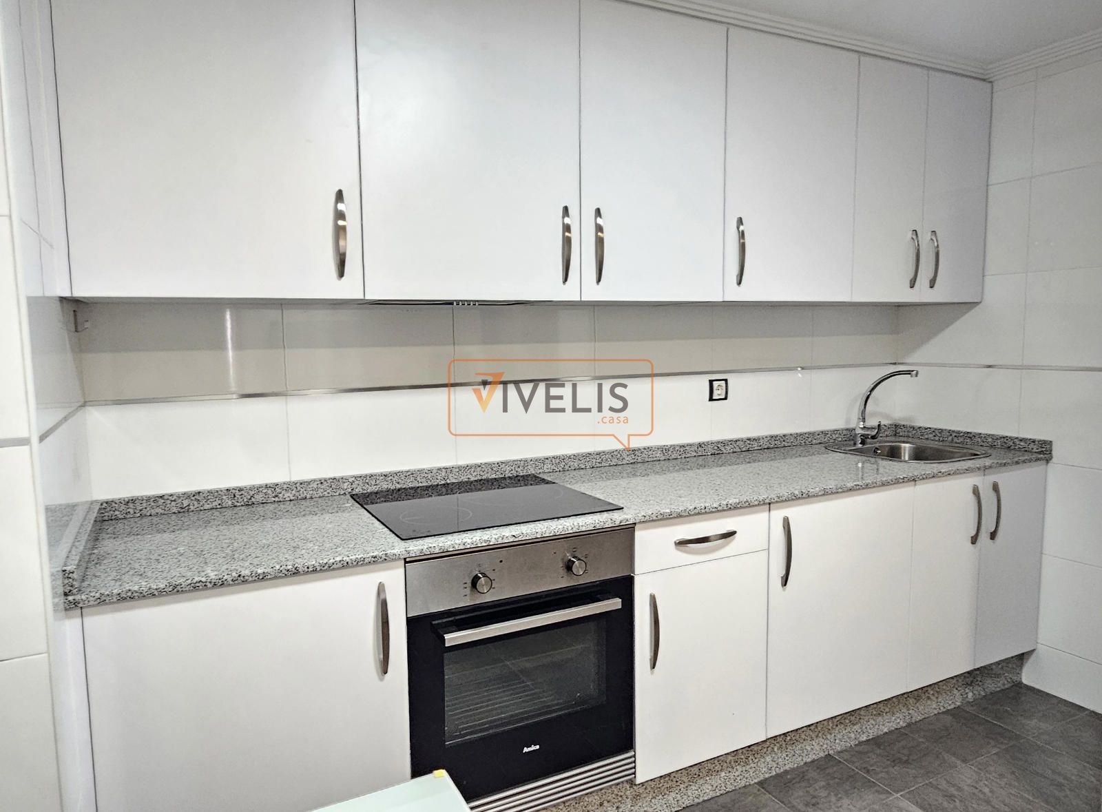 - Cocina blanca moderna, con acceso a un pequeño balcón al patio de luces, perfecta para tender.