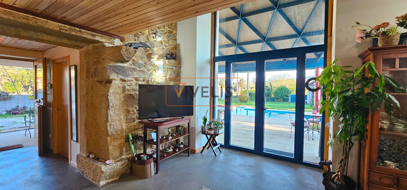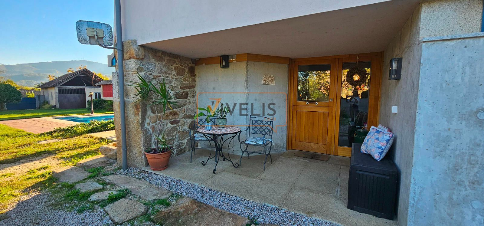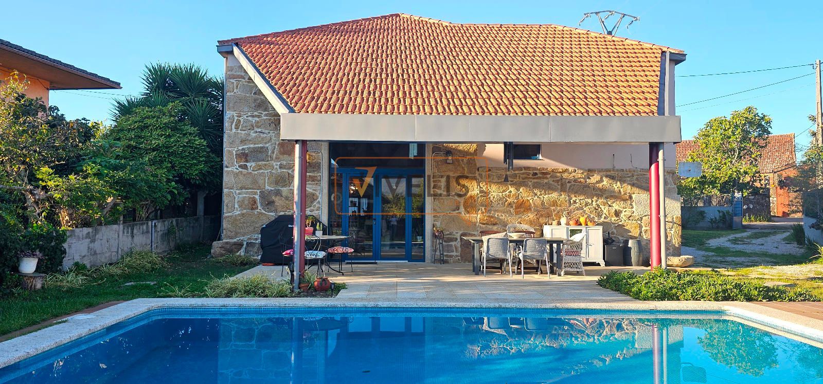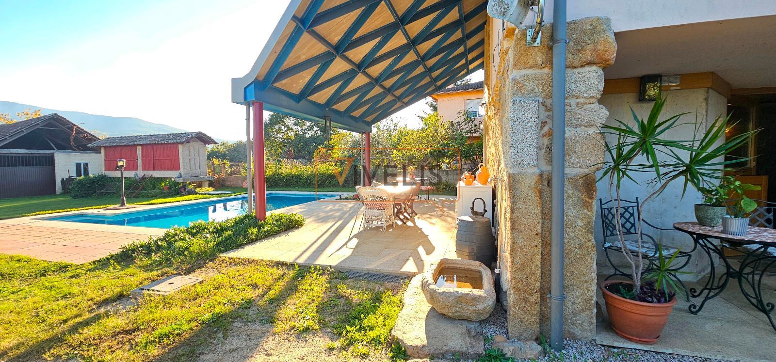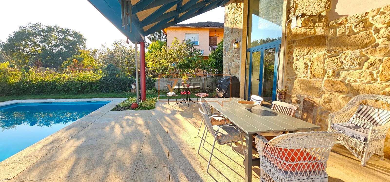En el jardín principal, junto a la piscina, encontramos un pozo propio y dos auténticas joyas arquitectónicas: un hórreo gallego totalmente restaurado, que conserva todo su carácter tradicional, y un antiguo palleiro rehabilitado, hoy utilizado para guardar los aperos del jardín, pero con un enorme potencial para transformarse en un salón de verano, una cocina exterior o incluso un apartamento para invitados.