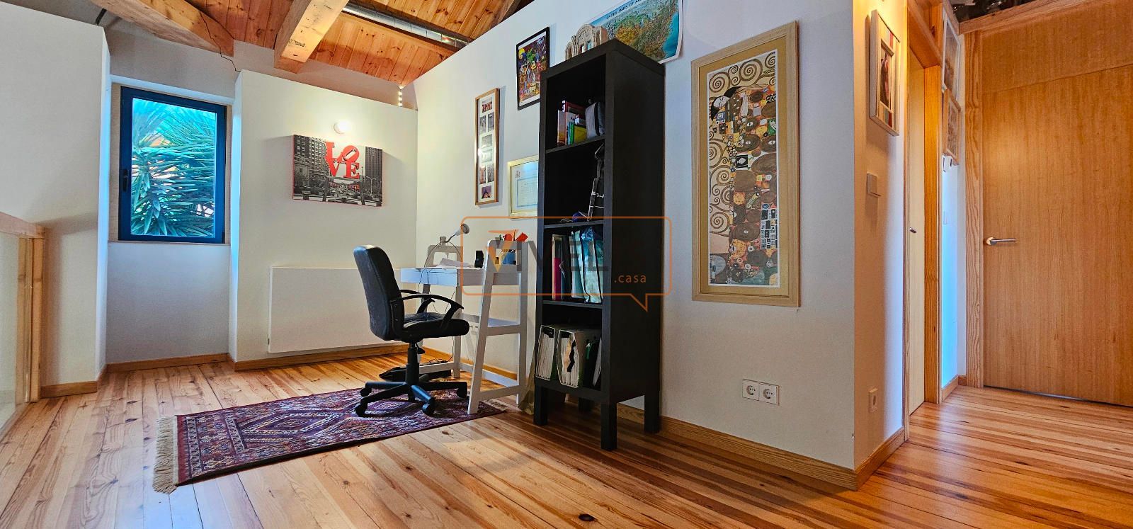 En la planta alta se ubican dos dormitorios más, un amplio baño completo y una luminosa zona de despacho situada en un altillo abierto al salón, desde donde se disfruta de vistas directas al jardín y la piscina.