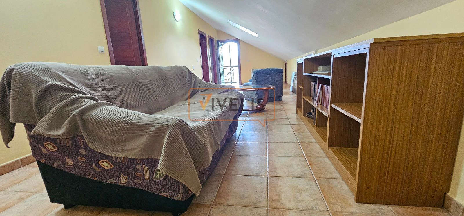 La vivienda dispone de tres habitaciones, o dos habitaciones y despacho, según el uso que se le quiera dar, baño con ducha, cocina amueblada con electrodomésticos y gran salón abuhardillado en el que contiene 3 pequeños trasteros aprovechando la caída del tejado.