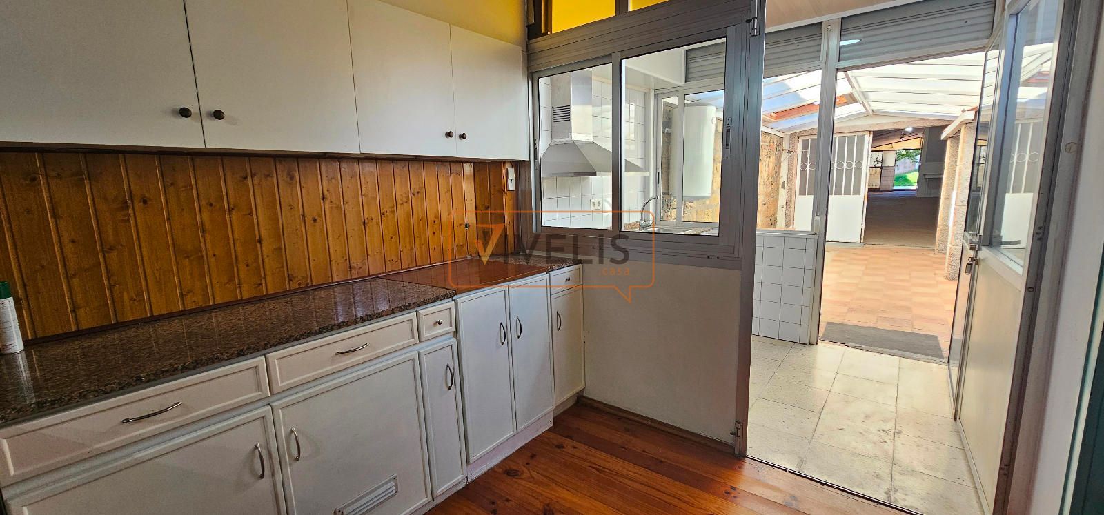 - Planta baja: cocina con salita, garaje y un espacio cubierto perfecto para taller, trastero o incluso para habilitar más estancias. También cuenta con un aseo muy práctico para dar servicio al jardín.